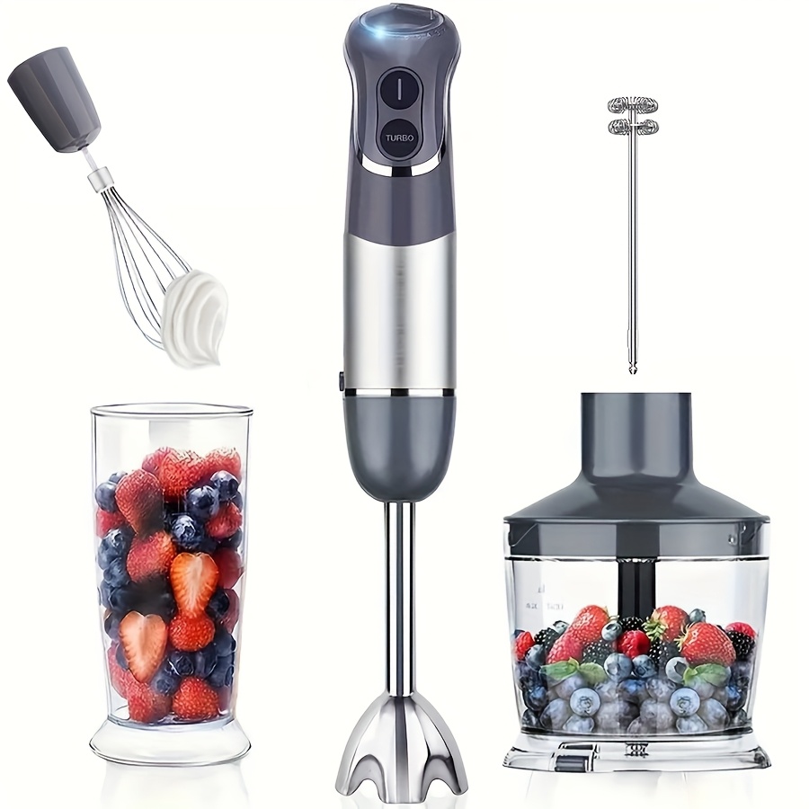 5-in-1 Handheld Blender, Hand Blender with Copper Motor and Stainless Steel Blades, Mixing Cup, Food Processor, Multifunctional Blender, Milk Frother, US Plug, Perfect for Smoothies, Purees, and More, Kitchen Blender, Puree Blender, Smoothie Maker