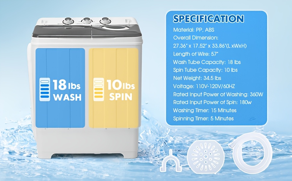 Portable Washing Machine Twin Tub - 28lbs Compact Washer(18lbs) And Dryer(10lbs) Combo with Drain Pump - Mini Laundry Machine for Apartments, Dorms, RVs, And Camping, Small Space Appliance, Lightweight Washerdryer, Spacesaving Design, Reliable