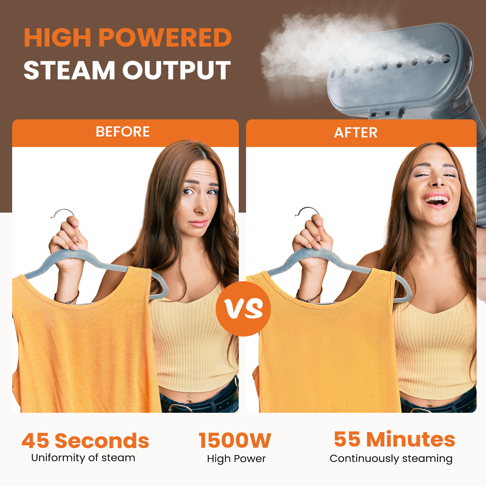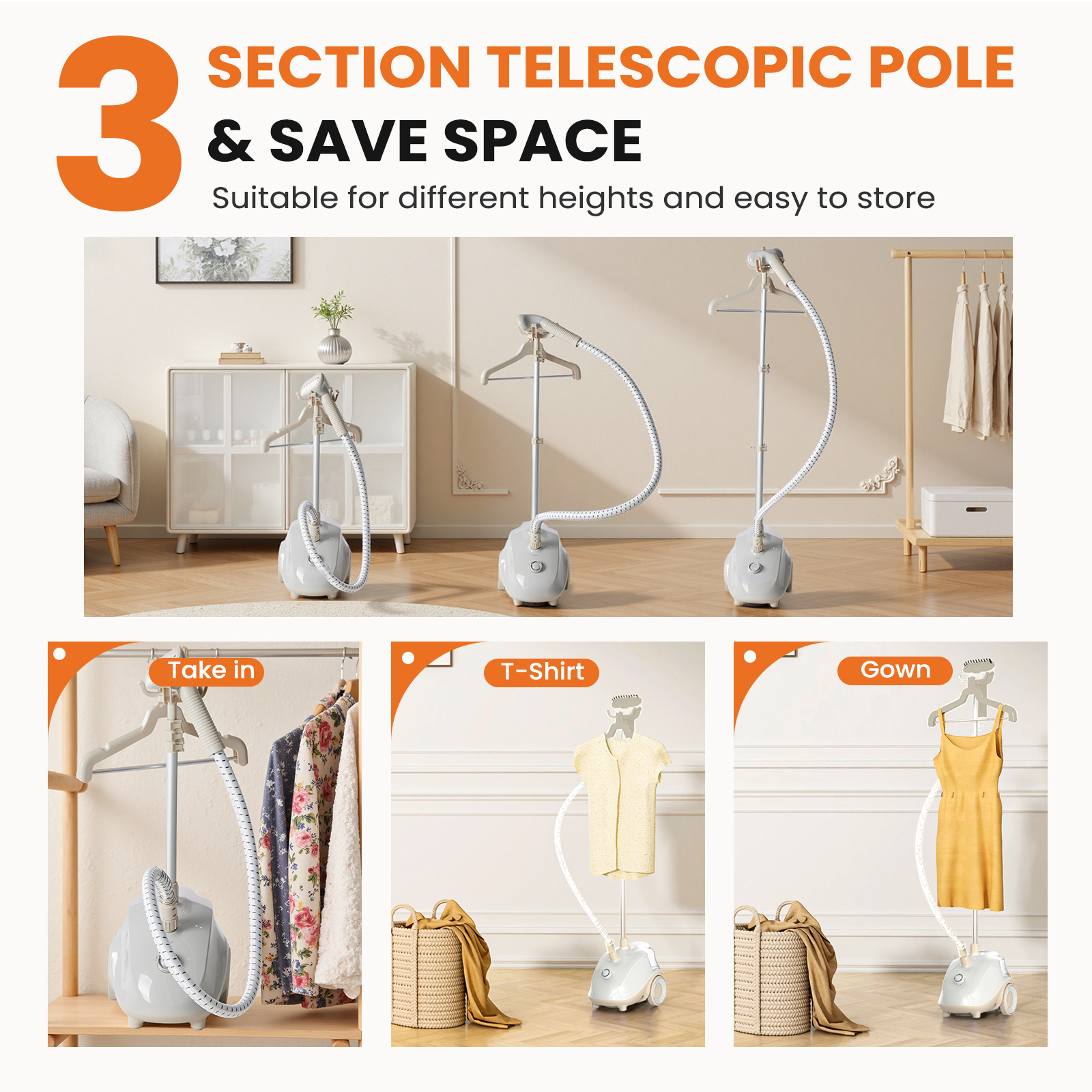 1500W Powerful Garment Steamer for Clothes Standing, Clothes Steamer Standing with Wheels, 1.7L Water Tank for 55 Min Continuous Steaming, Professional Wrinkle Remover Heats in 45 Seconds