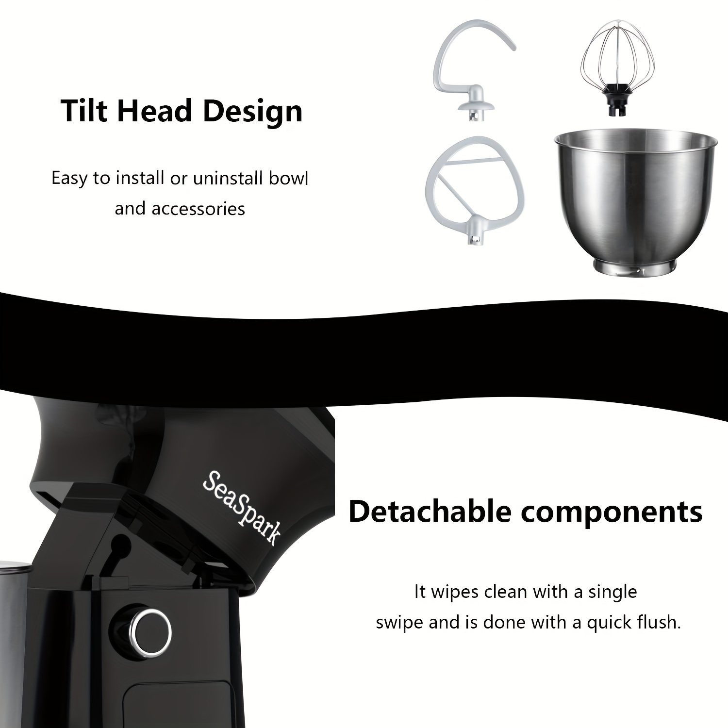 1pc Kitchen Stand Mixer, 3-IN-1 10-speed Tilting Mixer With Pulse Button, Including 5.5QT Stainless Steel Bowl, Dough Hook, Mixer, Egg Mixer, Spatula-Black