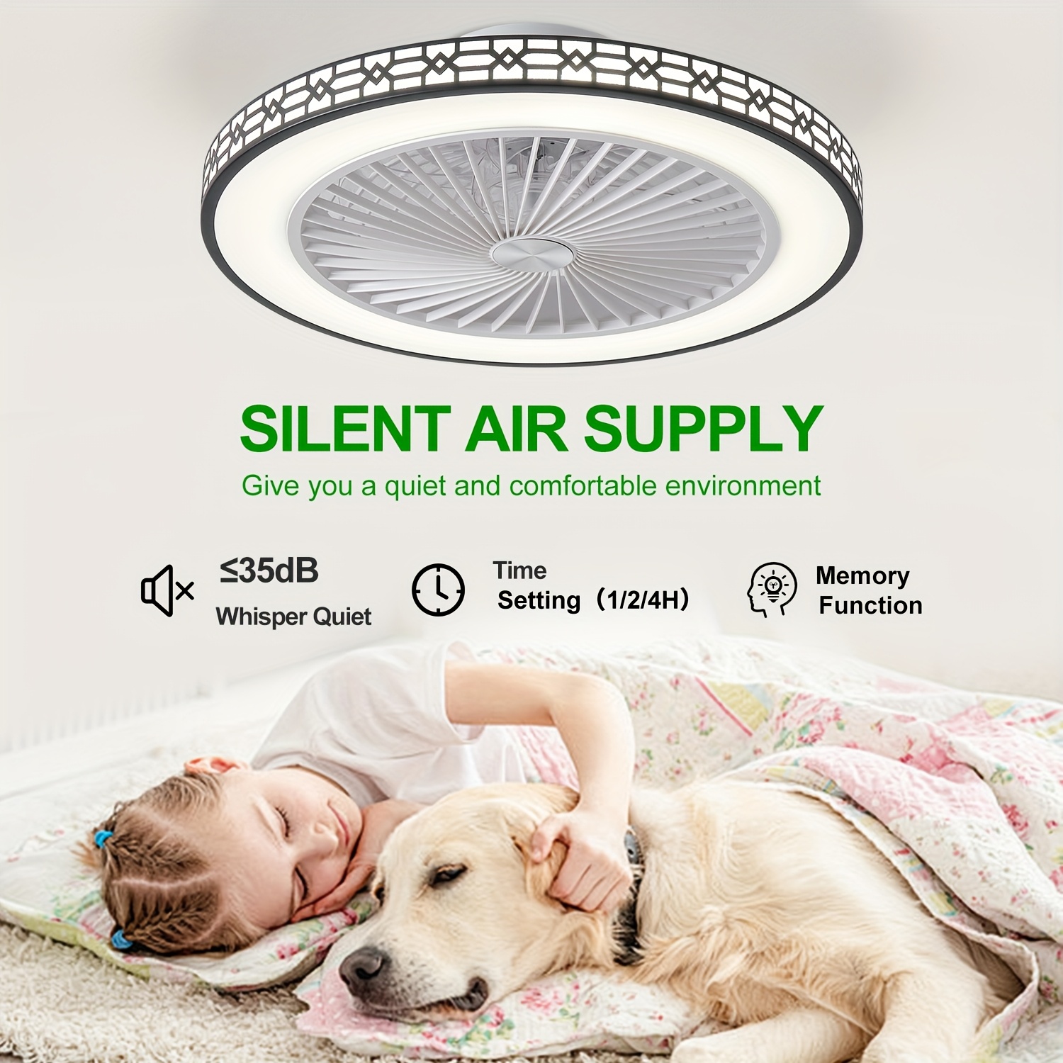 20-Inch Modern LED Ceiling Fan with Adjustable Light (3000K-6500K), Embedded Installation Design, Reversible Airflow for Enhanced Circulation – Ideal for Office, Study, Bedroom, and Indoor Spaces