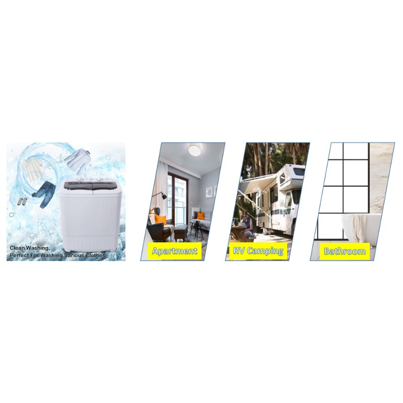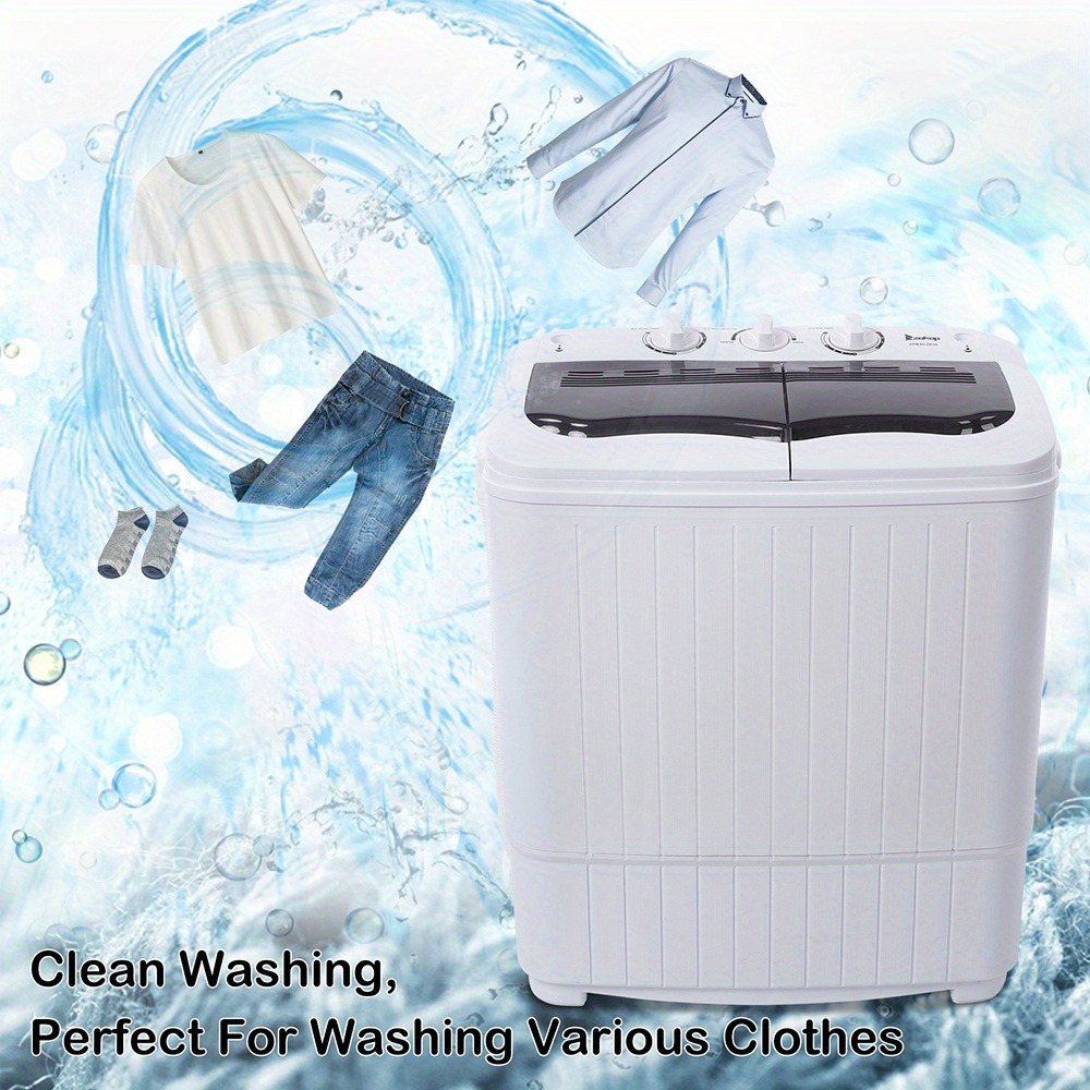 360 Twin Tub Washing Machine 15.8lbs Capacity Self-draining- 110V Semi-Automatic Portable Washer For Apartments/ Dorms/ RVs - Corrugated Tub & Bottom Drain Design, Gray Compact Laundry Unit