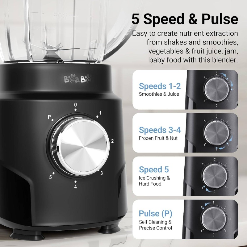 800W 6-Speed Heavy-Duty Blender with 10-Blade System & Cup - 50oz/1.5L Large Capacity, Non-Slip Base & Easy-Pour Spout, operation (Power Source: Not Included) for Smoothies, Ice Crushing, Puree - Countertop Blenders for