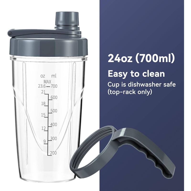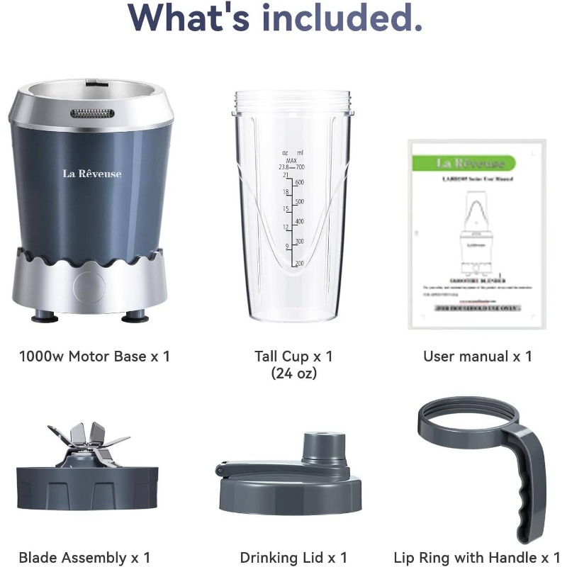 Personal Size 1000W /Plug-in Smoothie Blender Pro with 24oz to-Go Cup - High-Speed Blender for Smoothies, Protein Shakes, Food Prep, Portable Blending Machine, Compatible with /Outlet Power (Gray)