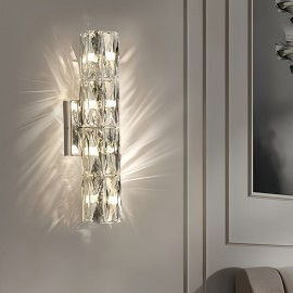 [Modern Minimalist LED] Modern Minimalist LED Wall Light | 3-Color Dimmable, Stainless Steel & Crystal Sconce, Semi-Flush Mount for Bedroom, Hallway, Bedside, Hardwired 110-240V, No Battery, Easy Installation, Contemporary Lighting, Sleek Metallic Finish, Wall Light For Living Room, Bedroom, Modern, Crystal Wall Light, Wall Lamp, Room Lamp, Indoor Wall Sconce