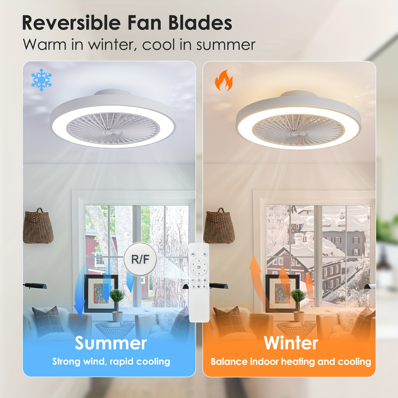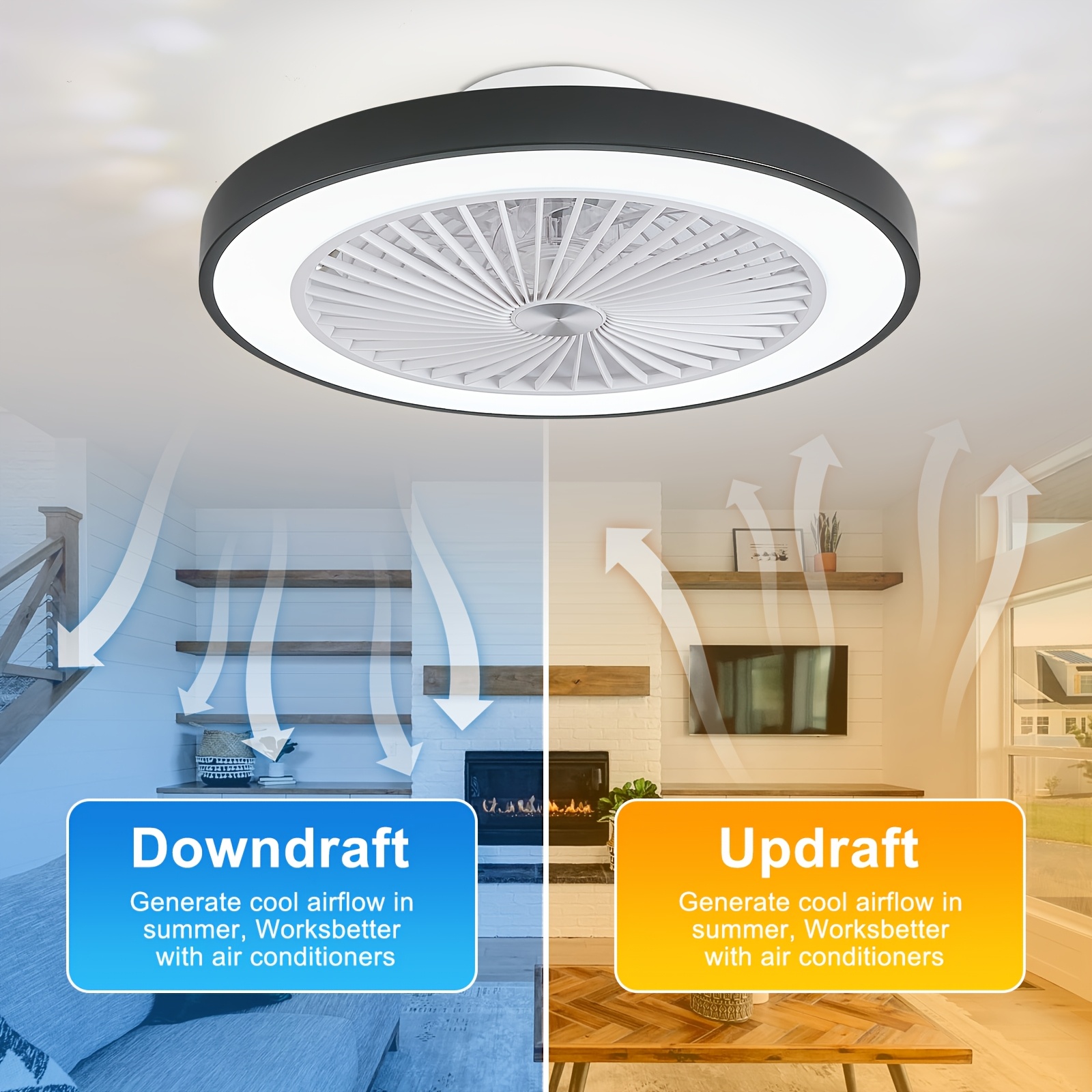 Modern 19" Bladeless Flush Mount Ceiling Fan with LED Light - 48W, 6 Speeds, Quiet, Dimmable, Reversible, Low Profile Design for Dining Room, Living Room, Kitchen, Youngsters' Room, Ceiling Fan Light