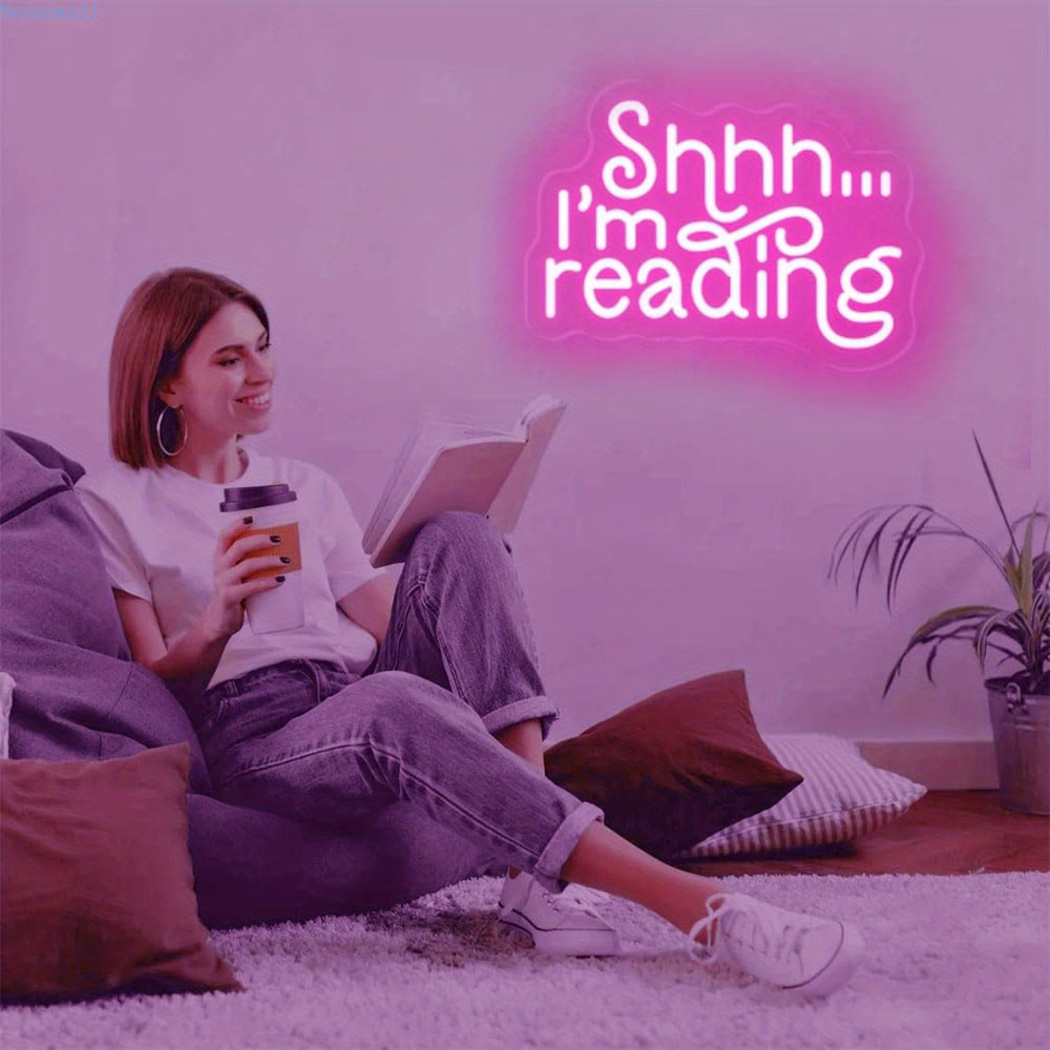 [Neon Sign for Bookshelf] USB Powered "Shhh I'm Reading" Neon Sign - Adjustable Brightness Wall Decor for Book Lovers