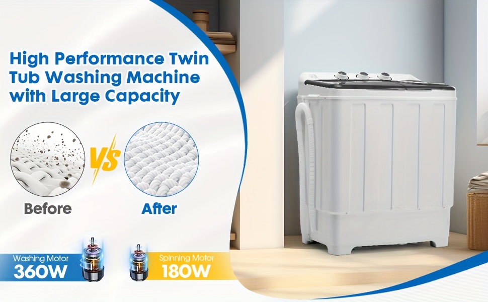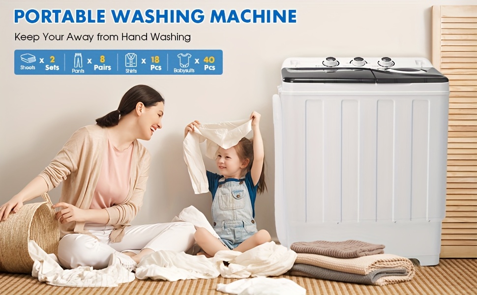 Portable Washing Machine Twin Tub - 28lbs Compact Washer(18lbs) And Dryer(10lbs) Combo with Drain Pump - Mini Laundry Machine for Apartments, Dorms, RVs, And Camping, Small Space Appliance, Lightweight Washerdryer, Spacesaving Design, Reliable