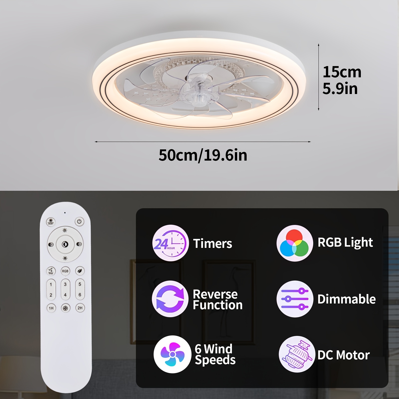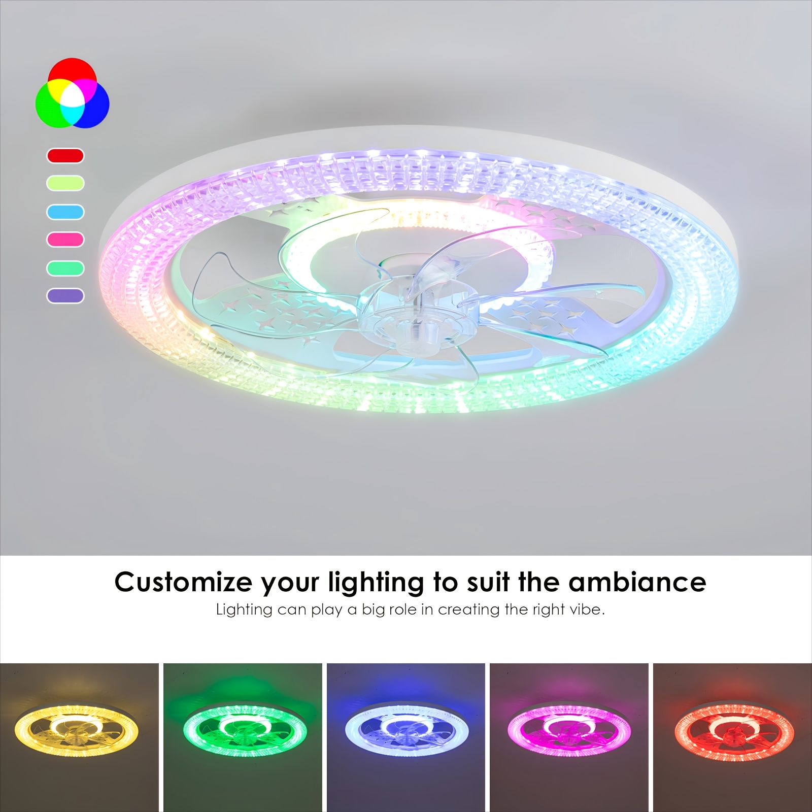 [Remote Control RGB Fan] Modern Low-Profile Ceiling Fan with RGB LED Lights - Remote Control 6-Speed Quiet Built-in Fan, Color-Changing RGB Lighting 3000K-6500K for Kids' Room, Bedroom, Living Room, Bedroom Airflow Solution, Integrated Lighting Fixture, Durable Light Combination